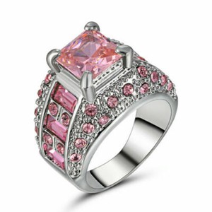 Size7 Princess Pink Sapphire Wedding Ring Women S 10kt White Gold Filled Jewelry