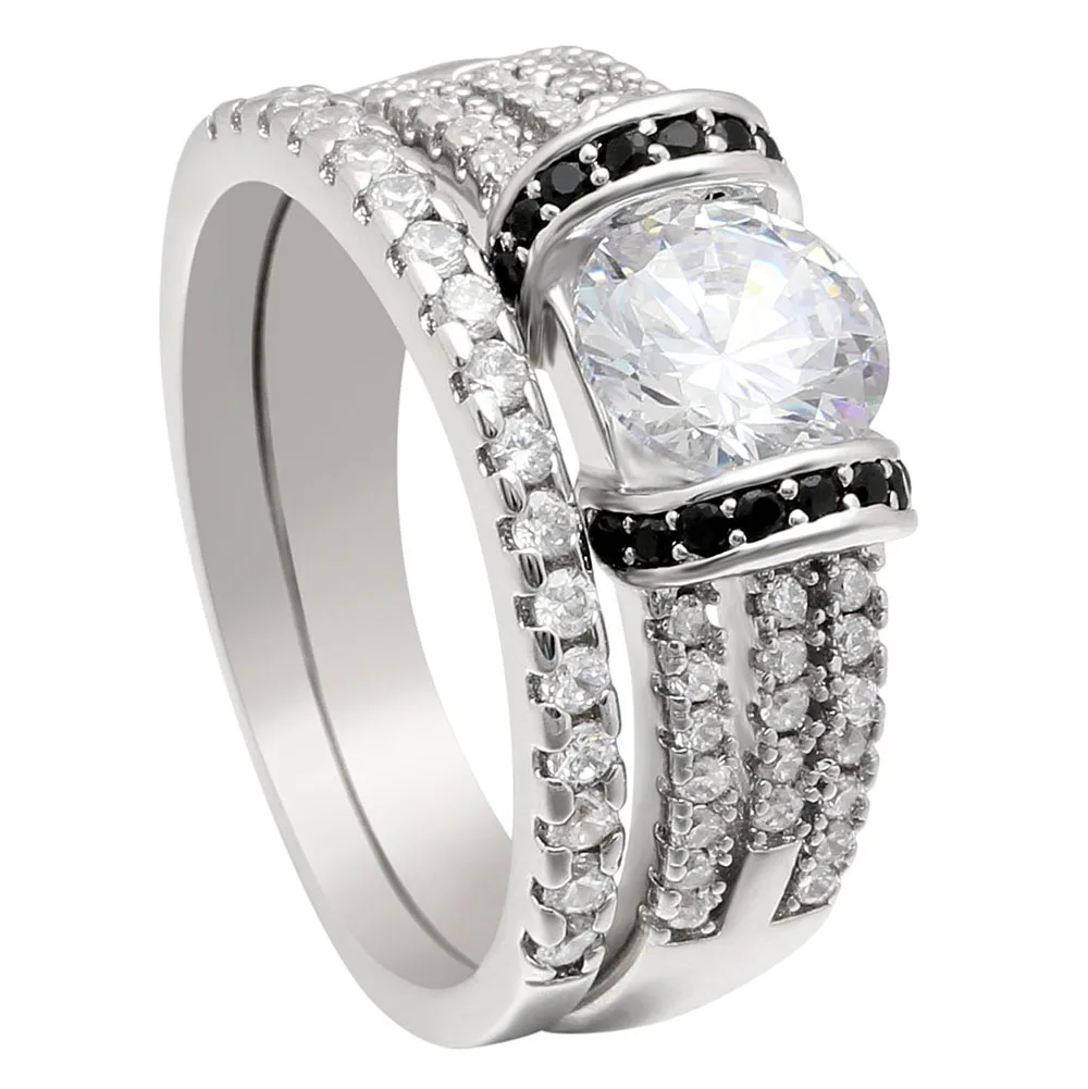 Us 3 99 Silver Color Bridal Sets White Black Cz Stone Jewellery Women Love Promise Rings Set 2pc Wedding Engagement Ring Gift For Lady In Rings From