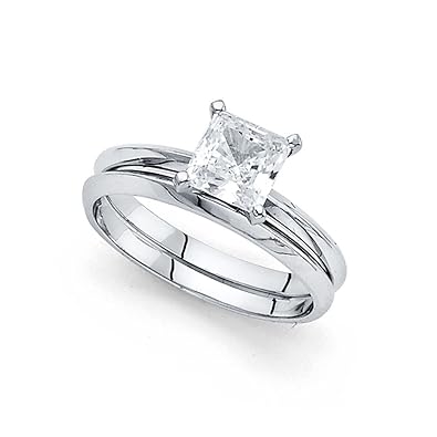 Amazon Com Gemapex 14k Yellow Or White Gold Princess Solitaire Cz