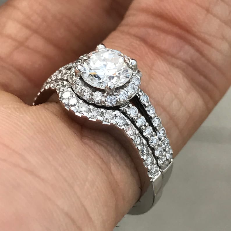 Round Diamond Halo Split Shank With Matching Wedding Band 1 36 Carat Tw