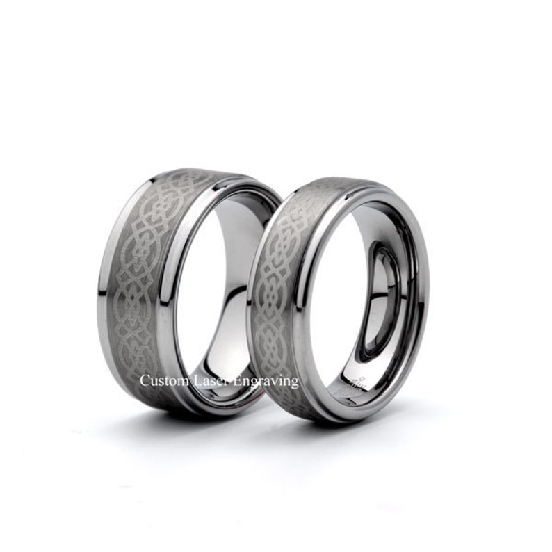 Brushed Tungsten Wedding Ring Tungsten Matching Set Mens Women S Rings Sets 9mm 6mm Celtic Tungsten Ring