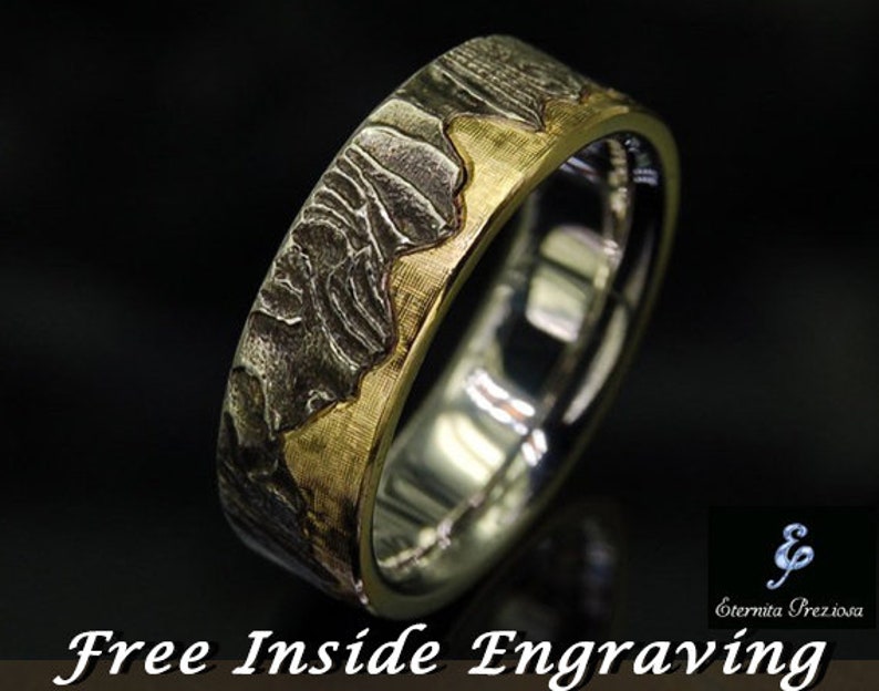 7mm Unique Mens Wedding Band Rustic Wedding Ring Men S Wedding Band Mens Engagement Ring Mens Wedding Ring 18k Gold Wedding Band