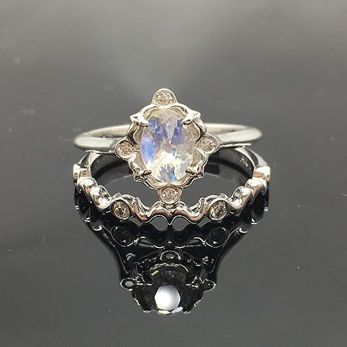 Amazon Com Moonstone Engagement Ring Set Solid 14k White Gold