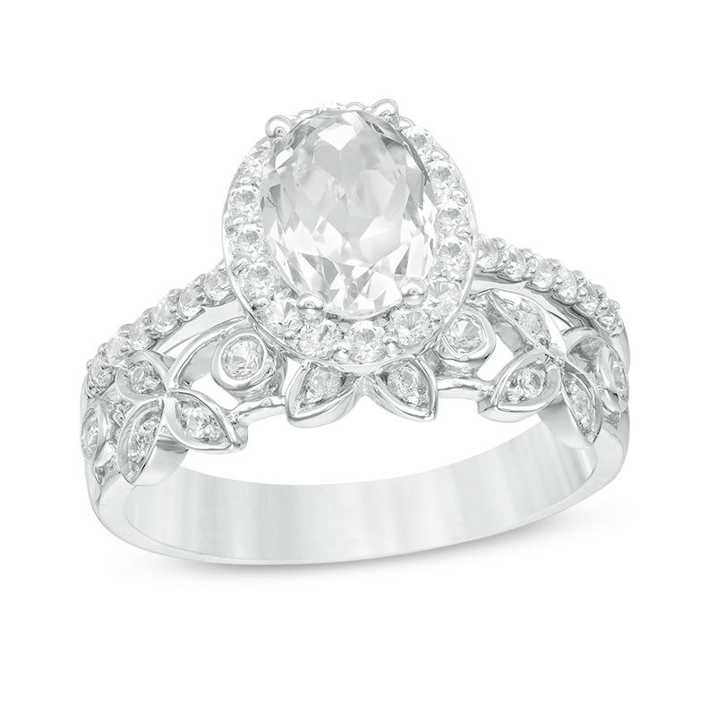 Oval Lab Created White Sapphire Frame Vine Bridal Set In Sterling Silver Zales