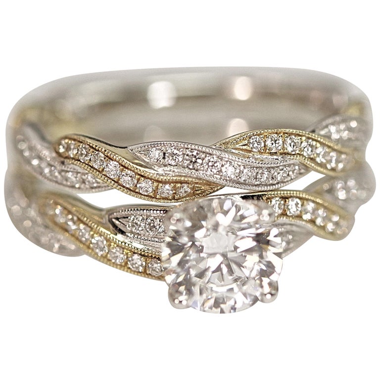 Diamond Engagement Ring Wedding Band Two Tone Gold With European Shanks