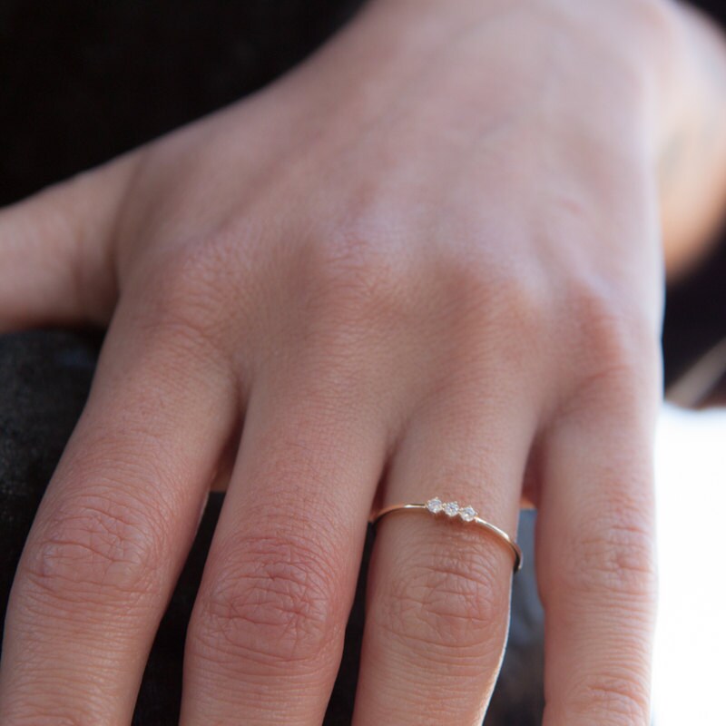 Diamond Gold Ring Triple Stone Ring Wedding Ring Engagement