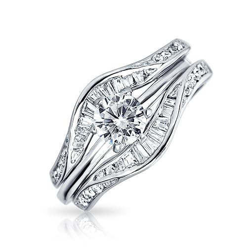 Silver Baguette Cz Round Engagement Wedding Ring Guard Set Amazon