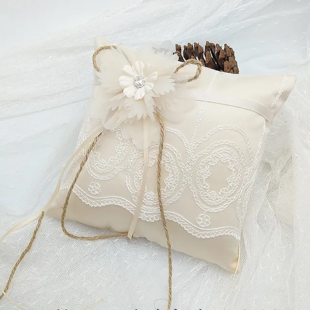 Us 3 97 5 Off 15x15cm Lace Flower Wedding Ring Holder Pillow Rhinestones Decorated Bridal Ring Bearer Cushion Ribbon Bowknot Party Decoration In