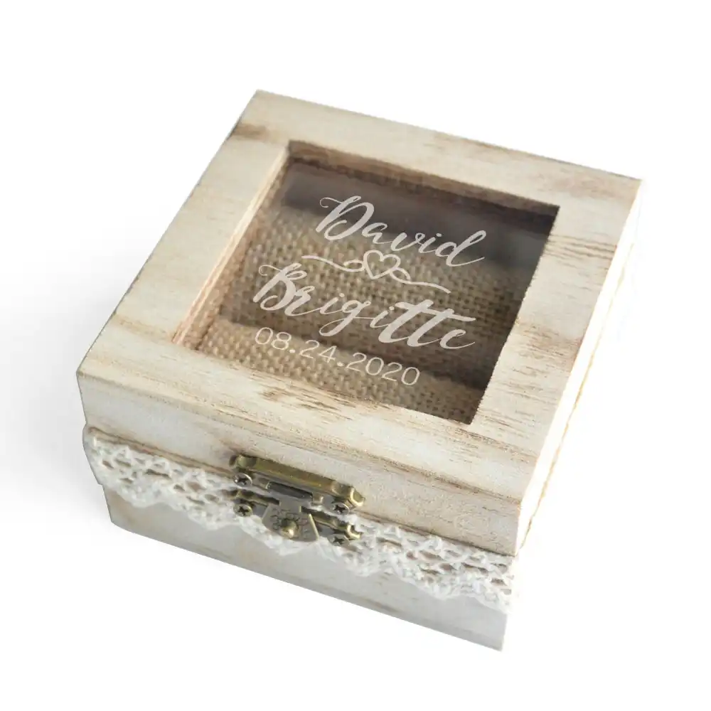 Rustic Wedding Ring Box Ring Bearer With Lace Personalized Rustic Wedding Gift Wedding Ring Pillow Box
