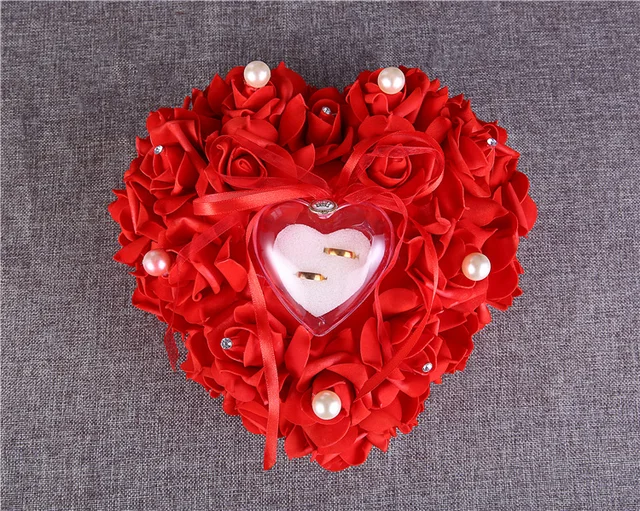 Us 11 15 6 Off Hanging Rose Wedding Ring Pillow With Gift Ring Box Wedding Ring Pillow Box Heart Design Rhinestones For Weddings Decoration In