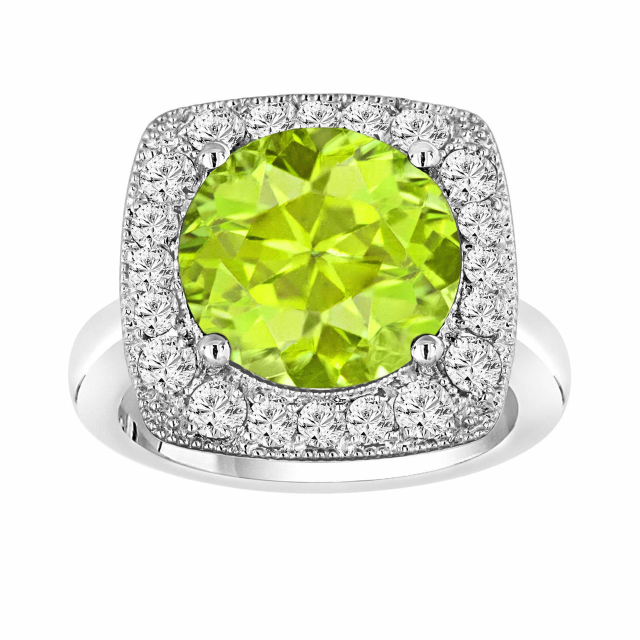 Peridot Diamond Engagement Ring 6 04 Carat 14k White Gold Unique Design Halo Ring Handmade