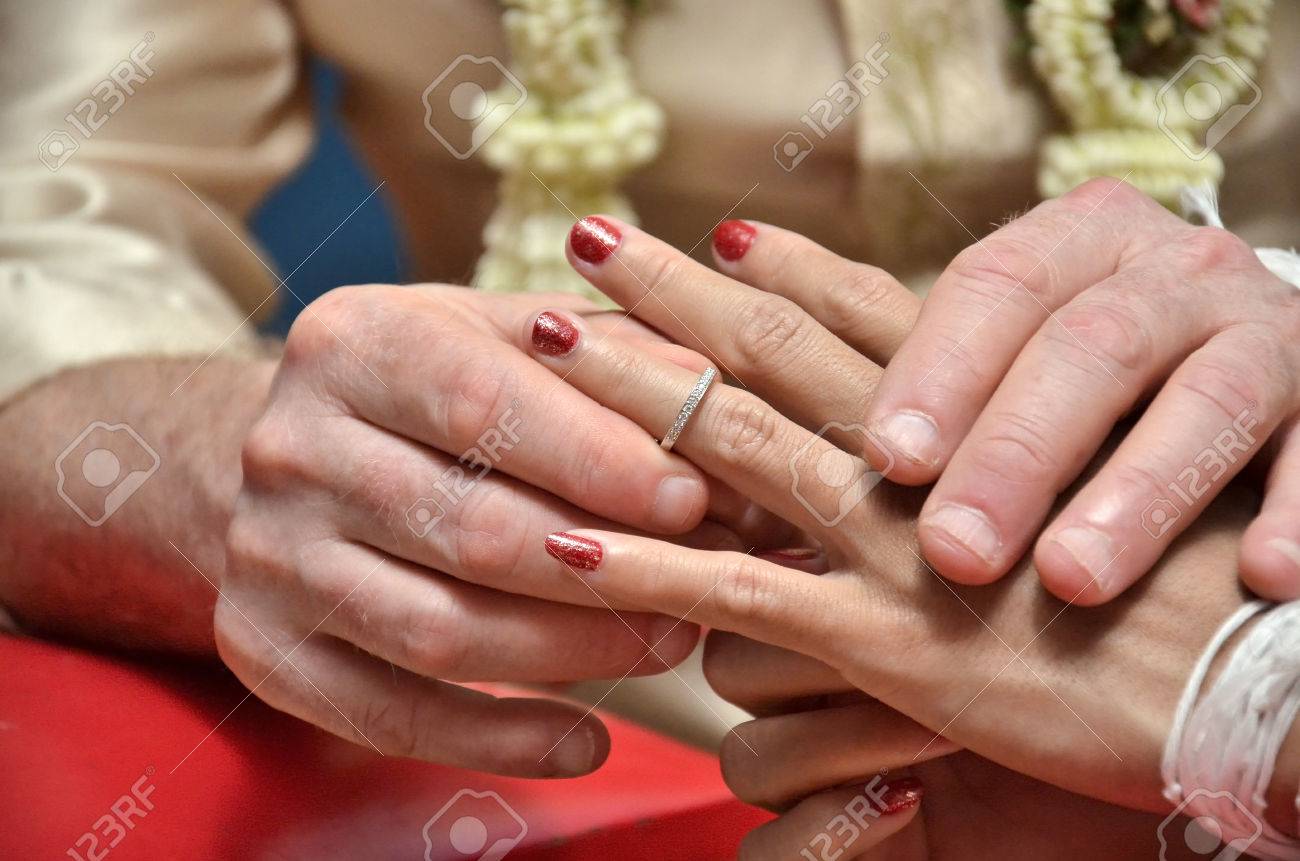 Traditional Thai Wedding Ceremony Groom Put The Wedding Ring