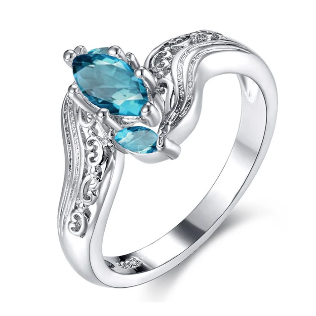 Us 8 02 15 Off Fashion Jewelry Silver Finger Ring Blue Crystal Effect Stone Vintage Texture Women Female Wedding Ring In Rings From Jewelry