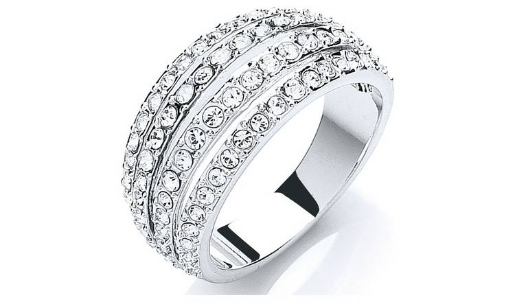 Buy Buckley Silver Colour Pave Crystal Strands Ring Medium Womens Wedding Rings And Bands Argos