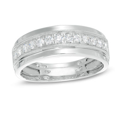 Men S 1 2 Ct T W Diamond Milgrain Wedding Band In 10k White Gold Zales