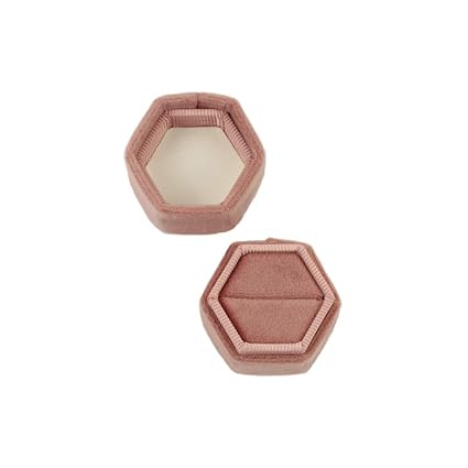 Koyal Wholesale Velvet Ring Box Dusty Rose Hexagon Vintage Wedding Ceremony Ring Box With Detachable Lid 2 Piece Engagement Ring Box Holder Modern