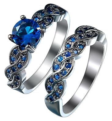 Zhenyul 2 0ct Women S Black Gold Blue Sapphire Princess Cut Cz Topaz Anniversary Band Engagement Bridal Wedding Rings Set Jewelry