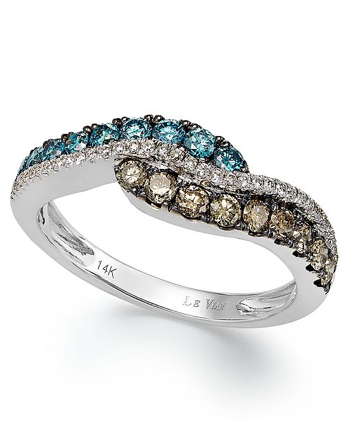 Chocolate Blue And White Diamond Ring In 14k White Gold 5 8 Ct T W