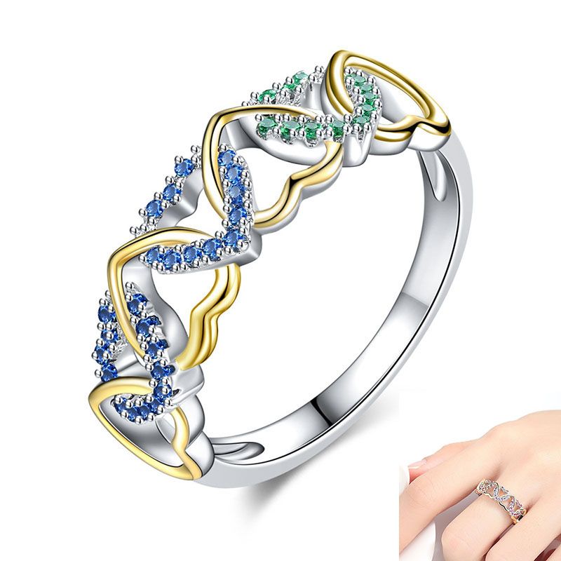 Romantic Silver Color Heart To Love Heart Ring Colorful Crystal Cheap Rings For Women Bridal Wedding Jewelry Dropship