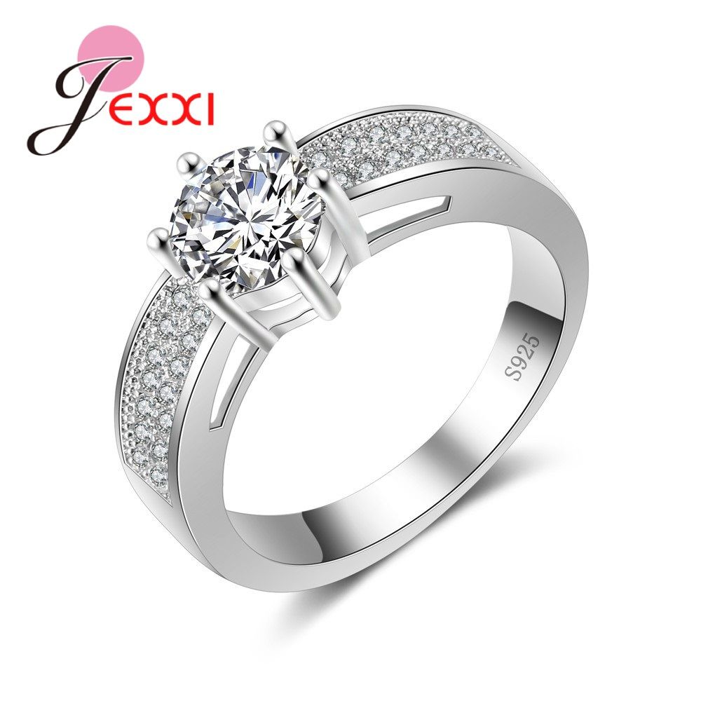 Whole Salejexxi Women Bridal Wedding Rings Jewelry Special Round Wide Design 925 Sterling Silver Cubic Zircon Engagement Anniversary Ring