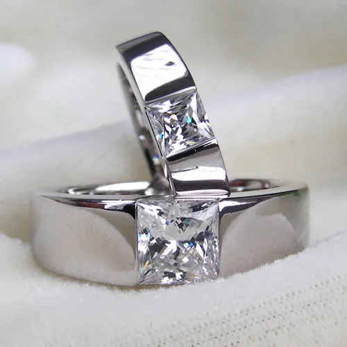 Amazing Design Real Solid 18k 750 White Gold Couple Rings Simulates Diamond Lover S Wedding Rings His And Her Love Promise Ring