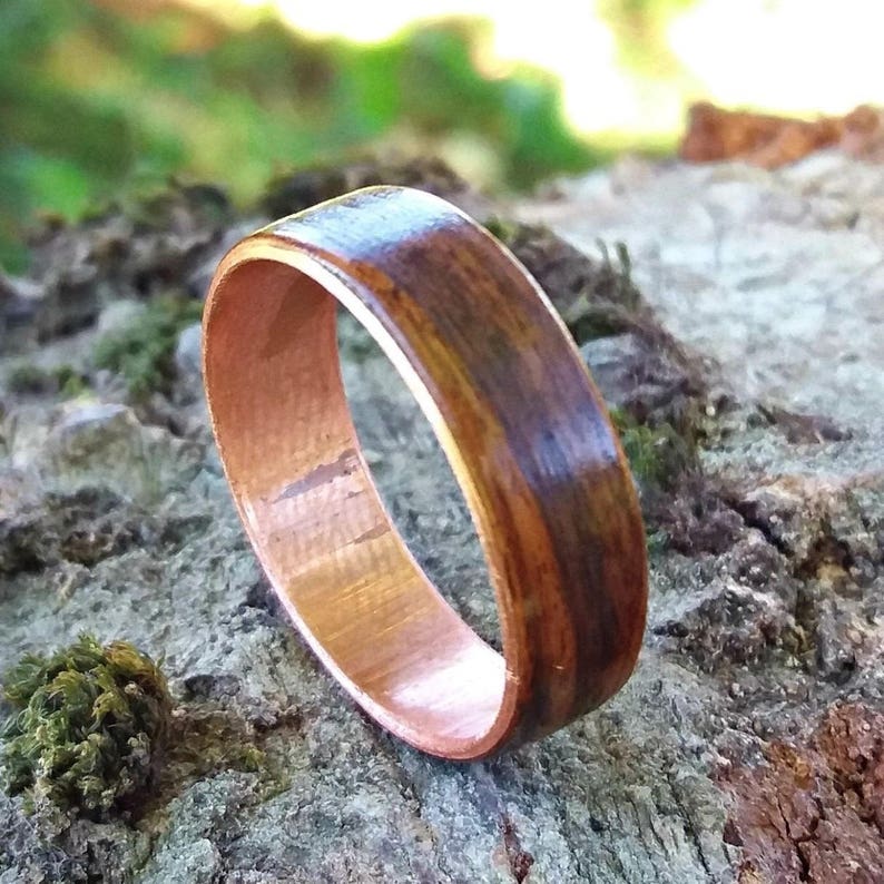 Historic teak wood wedding ring from the uss north carolina with whiskey barrel and copper inlay from 39500. Walnut wood and copper wedding ring rustic mens wedding band 7 year anniversary gift for husband mens handmade wooden jewelry dzefer 5 out of 5 stars 50 7267 free shipping.
