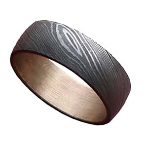 Damascus Steel Copper Inner Lined Ring Size 8 9 10 11 12 13 Wedding Engagement