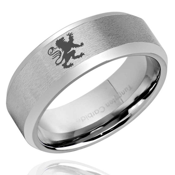 Griffin Design Tungsten Ring Men Beveled Edges Tungsten Wedding Band Tungsten Ring Silver Man Promised Ring For Him