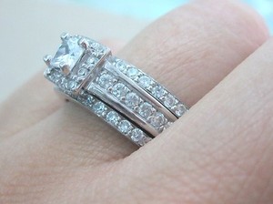 Details About 925 Sterling Silver Princess Cz Bridal Set Engagement Wedding Eternity Rings