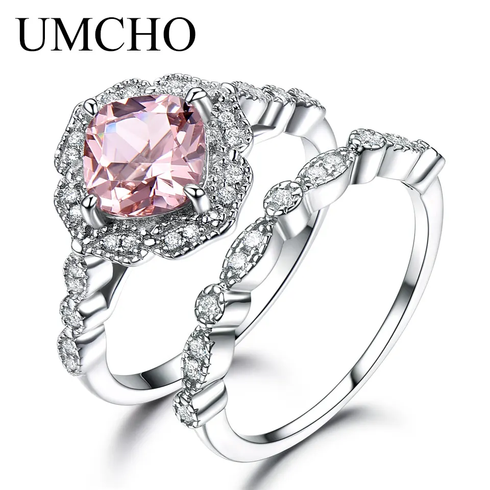 Umcho Solid Sterling Silver Morganite Rings For Women Engagement Anniversary Band Ring Set Pink Gemstone Valentine S Gift