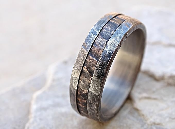 Amazon Com Cool Mens Ring Mixed Metal Unique Wedding Band Bronze