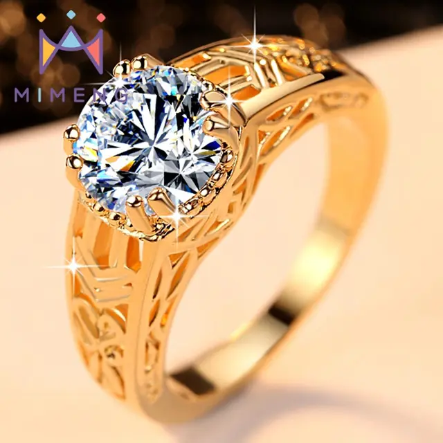 Us 2 32 34 Off Women Wedding Ring Big Cz Ring In Yellow Gold Color Hollow Design Ring Old Style Jewelry Charming Rings For Ladies In Rings From