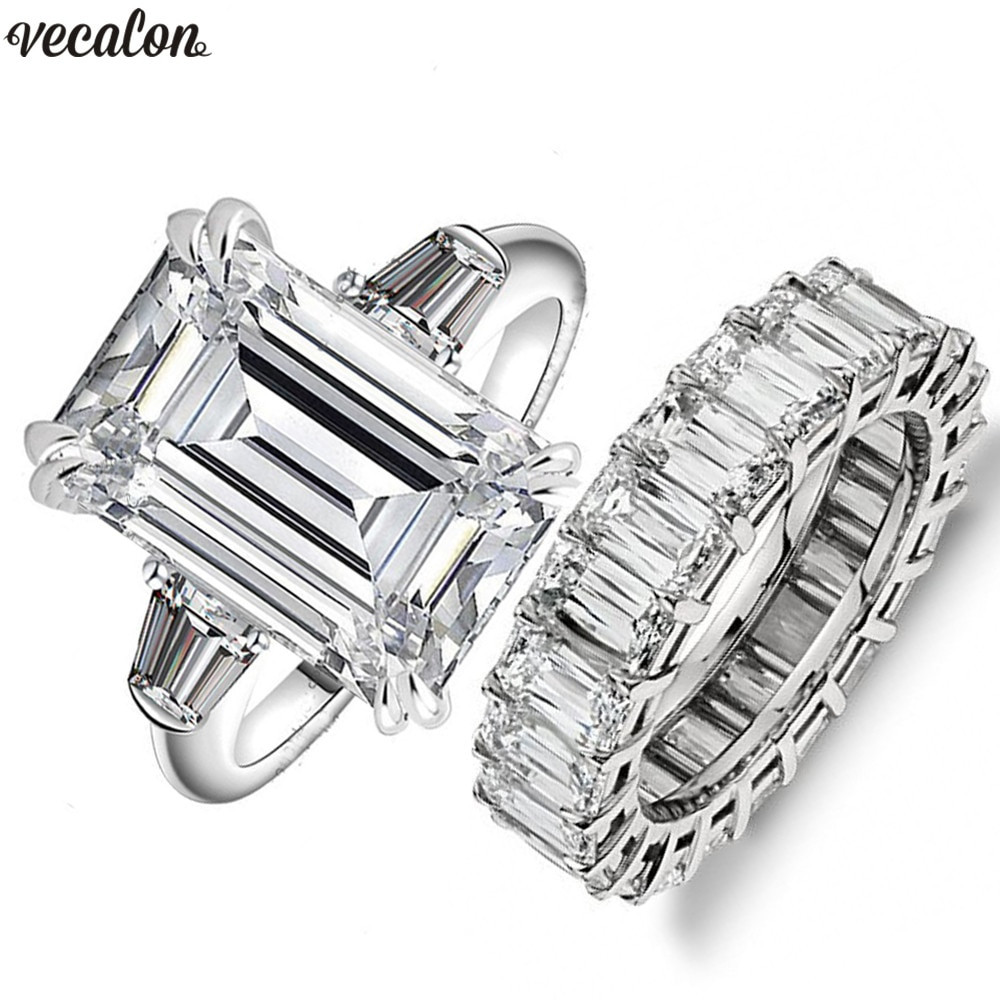 Vecalon Luxury Promise Ring Sets Princess Cut Aaaaa Cz Stone 925 Sterling Silver Engagement Wedding Band Rings For Women Men