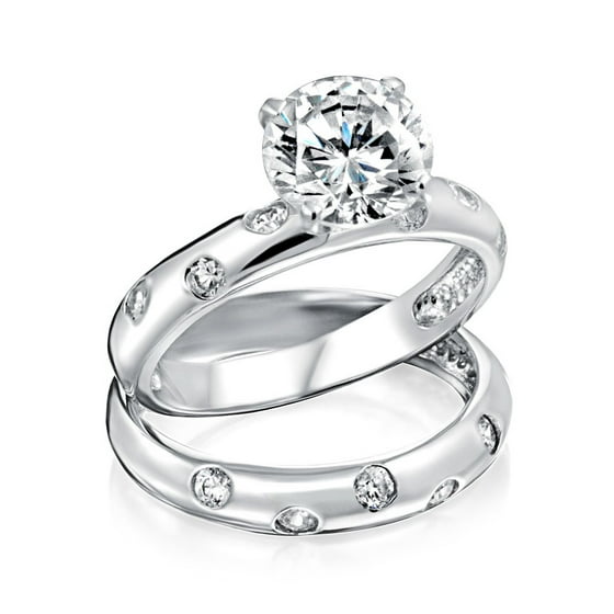 2ct Round Solitare Cz Etoile Promise Engagement Wedding Ring Set Cubic Zirconia Dome Band 925 Sterling Silver Cubic