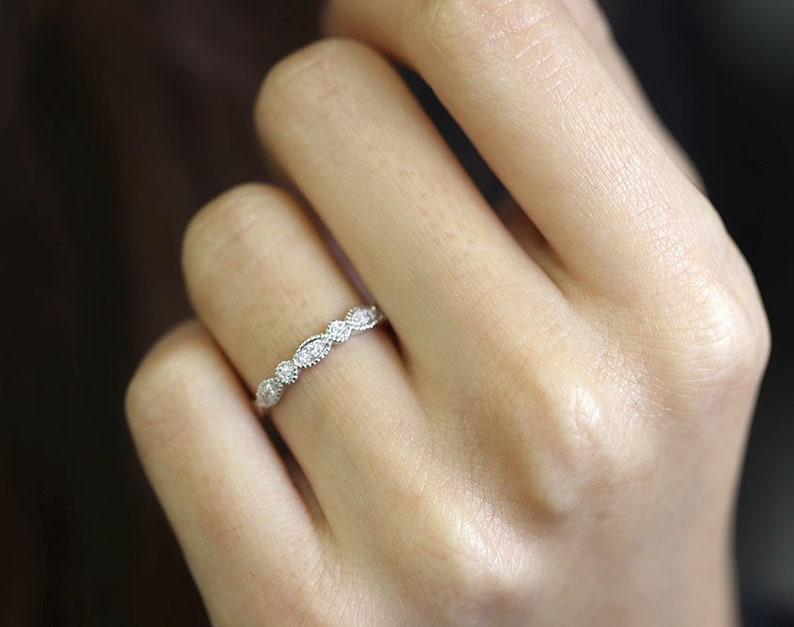 Rose Gold Wedding Ring Diamond Wedding Band 14k Solid Gold Matching Band Natural Diamond Band Half Eternity Diamond Ring Simple Diamond Ring