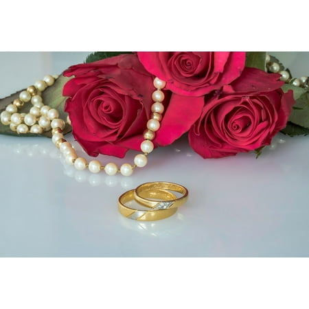 Canvas Print Pearl Necklace Roses Wedding Rings Gold Rings Rings Stretched Canvas 10 X 14
