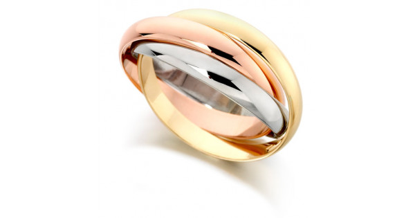 Ladies Solid 9ct Yellow White And Rose Gold Interlocked Russian Wedding Ring