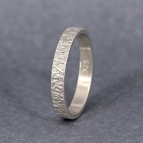 3mm Wood Bark Tree Bark Textured Rustic Wedding Band 925 Sterling Silver Mens Women Unisex Thick Handmade Wedding Ring Free Custom Engraving