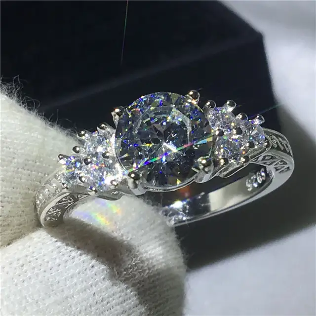 Details About New 925 Sterling Silver Cluster 3 Stone Engagement Wedding Rings Uk Seller