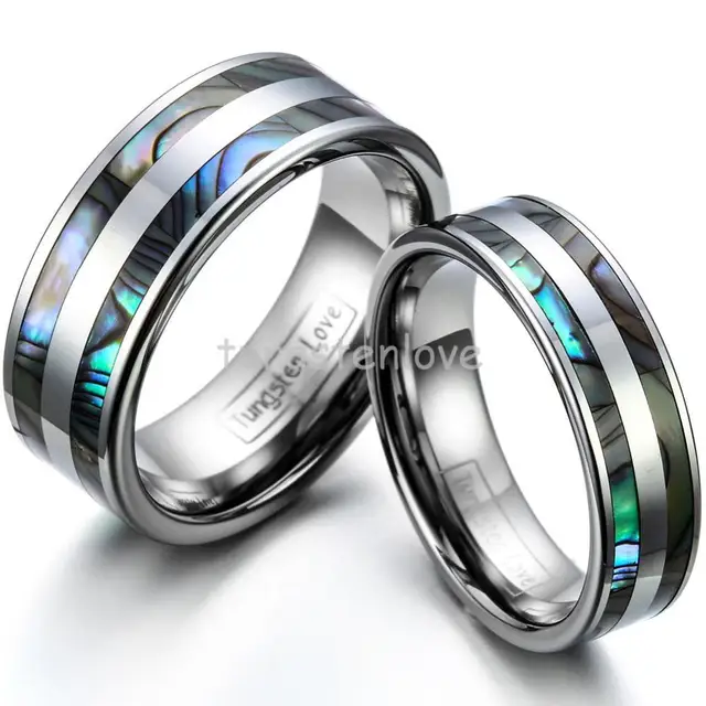 High Polish Tungsten Engagement Rings Set With Double Abalone Inlay For Couples Wedding Bands 1pcs In Rings From Jewelry Accessories