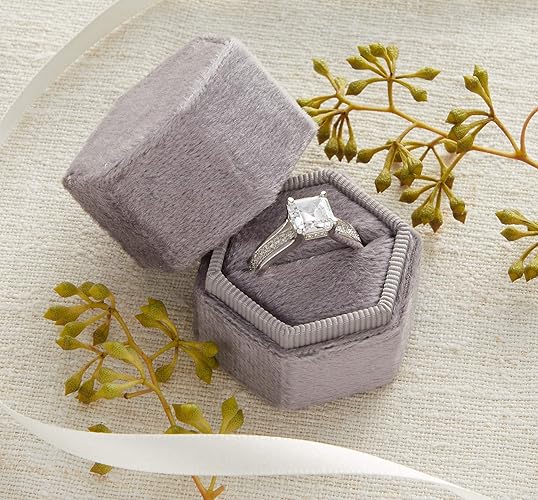 Velvet Ring Box Silver Gray Hexagon Shape Engagement Ring Box Ring Bearer Box Wedding Ring Box Wedding Photo Shoot Engagement Photo Shoot
