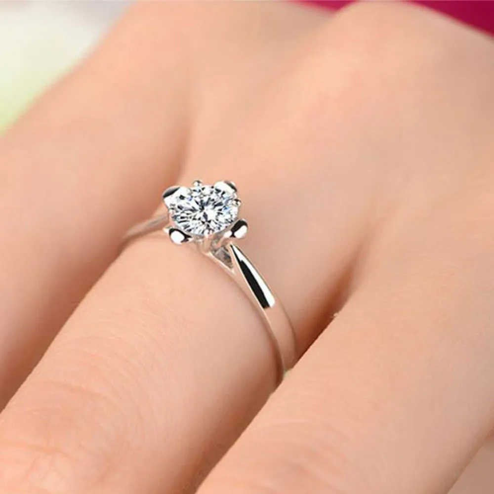 2018 Bfq High End Fashion Simulation Diamond Ring Silver Hand Ornament Women S Round Shape Weddings Rings Wholesale
