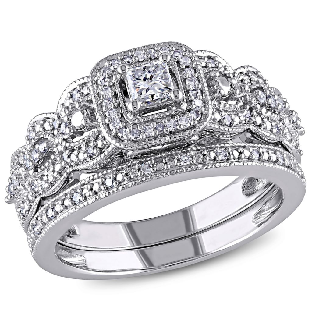 Julianna B 14k White Gold 0 47ctw Princess Cut Diamond Braided 2 Piece Bridal Ring Set