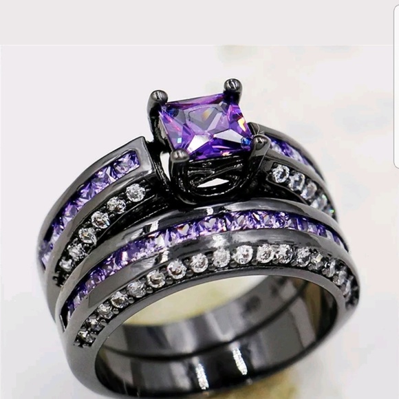 Black Gold Filled Amethyst Wedding Ring Set Boutique