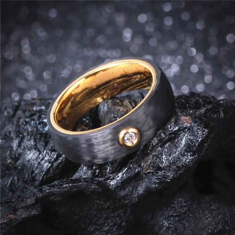 Gold Black Carbon Fiber Lovers Couples Wedding Rings 6mm For Boy Girl Promised Band With Cz Stone Vintage Jewelry