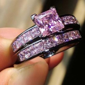 Fashion Girl Pink Zircon Wedding Rings Black Gold Plated Ring Band