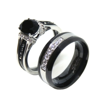Mabella Couple Rings Black Men S Titanium Matching Band Women Cz Stainless Steel Engagement Wedding Sets