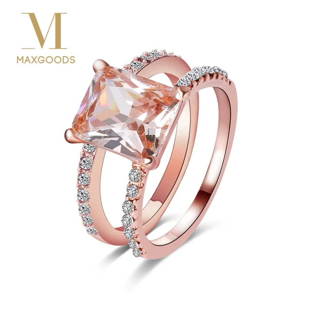 Us 0 85 35 Off Rose Gold Thin Engagement Ring Set Fashion Crystal Rhinestone Wedding Rings Pair For Women Girls Ladies Bridal Jewelry Gifts In