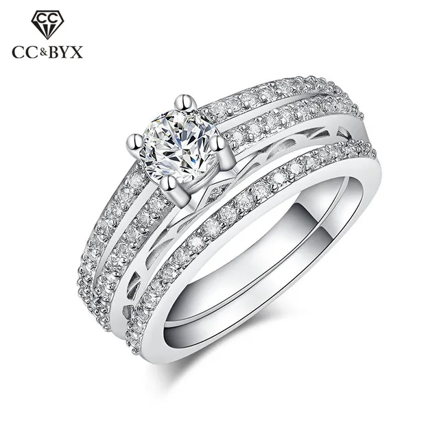 Us 4 79 40 Off Cincin Wanita Plated Bridal Sets Wedding Rings 2 Piece Double Engagement Ring For Women Jewelleries Fashion Accessories Cc165 In