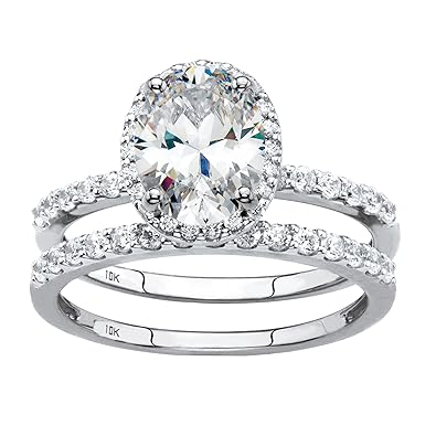 Solid 10k White Gold Oval Cut Cubic Zirconia 2 Piece Bridal Ring Set